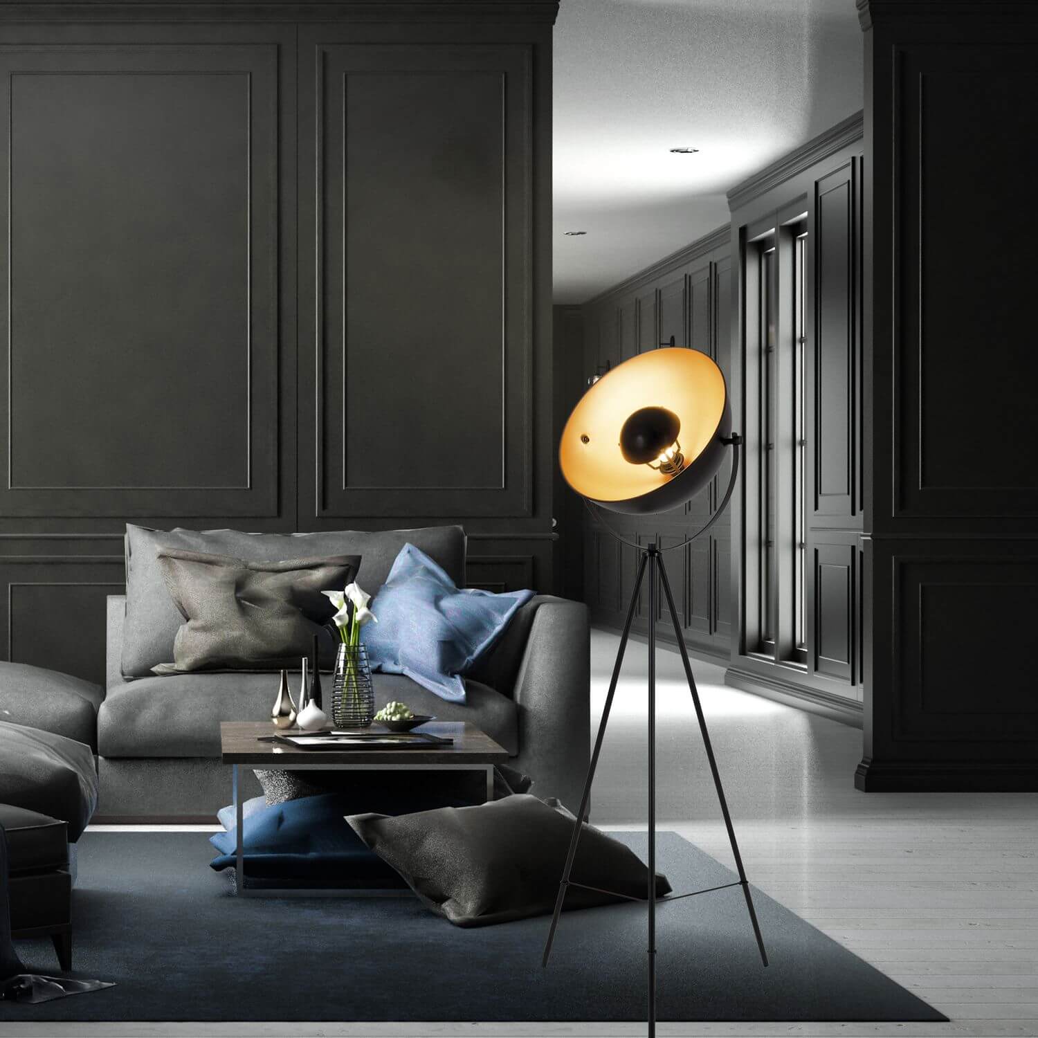 Näve E27 Stehleuchte BERNICE Ø40cm schwarz-gold 2096458