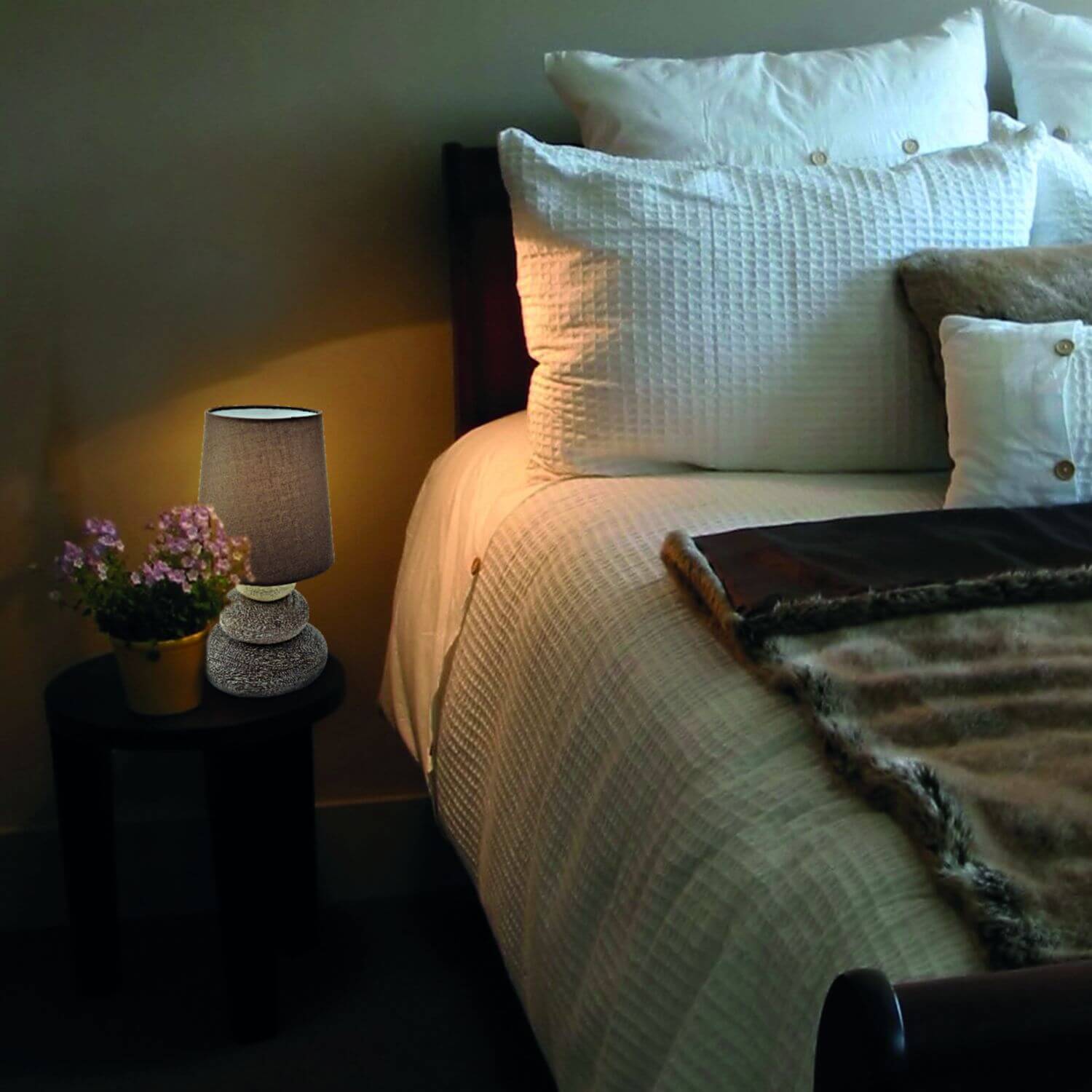 Näve E14 Tischleuchte STONEY Ø16cm braun 3045214