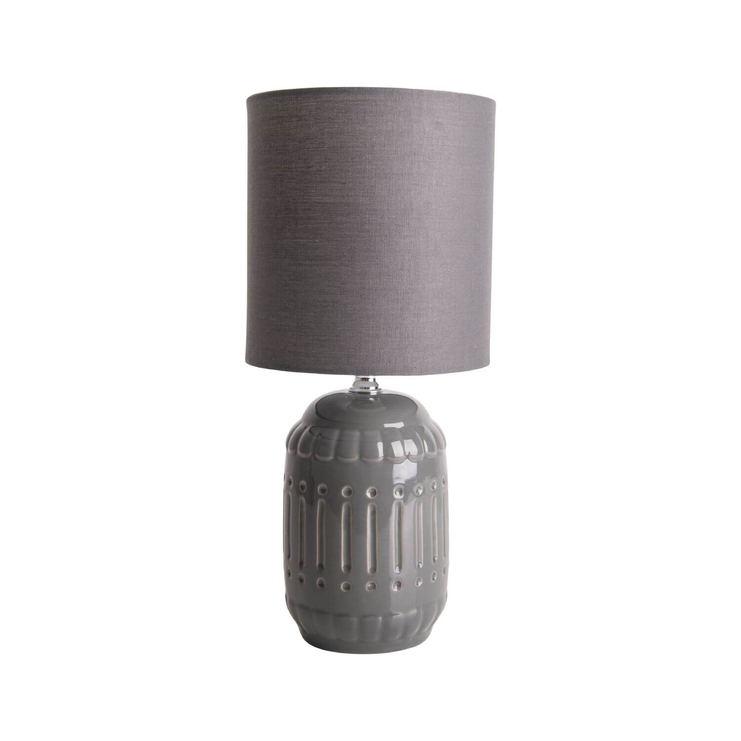 • Aufwendig und mit viel Liebe zum Detail gearbeitet, sorgt die Keramik-Tischleuchte Erida für eine stilvolle Beleuchtung in Ihrem Zuhause. Das ästhetische Design harmoniert hervorragend mit der eleganten farblichen Gestaltung in Grau. Dadurch können Sie die Tischleuchte ausgezeichnet mit allen bestehenden Farbkompositionen im Wohnzimmer, Schlafzimmer, Flur oder in der Wohnküche kombinieren. So wirkt die Leuchte hervorragend neben einfarbigen und gemusterten Polstermöbeln, lässt sich dekorativ neben dem Bett mit bunter Bettwäsche platzieren und verleiht jeder Tischwäsche einen strahlenden Charakter. Ob Sie die Keramik-Tischleuchte Erida als dezente Hintergrundbeleuchtung, als Lese Leuchte oder zur Akzentbeleuchtung in Ihrem Wohnraum einsetzen, ihr formvollendetes Design unterstützt die Gestaltung Moderner Wohntrends.