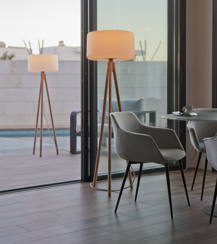 Preview: NewGarden CHLOE 140 LED Solar Outdoor Stehleuchte 140cm dimmbar Holzbeine + Akku Innen & Außen IP65
