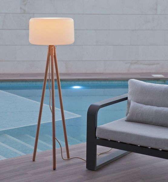 Mobile Preview: NewGarden CHLOE 140 LED Solar Outdoor Stehleuchte 140cm dimmbar Holzbeine + Akku Innen & Außen IP65