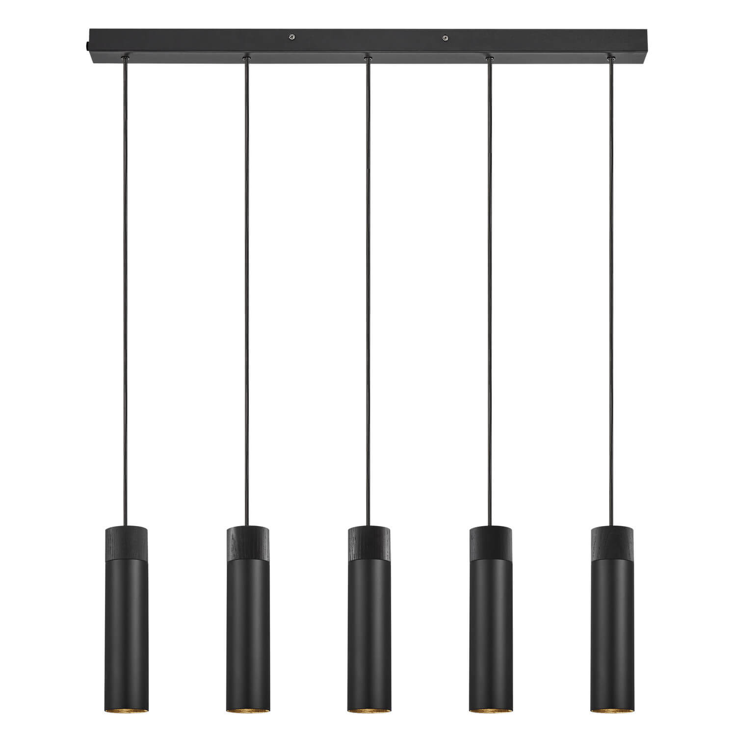 • Die minimalistische Tilo-Serie strahlt skandinavische Eleganz mit schlichtem Design und klaren Linien aus. Der schmale Lampenkopf emittiert ein präzises nach unten gerichtetes Licht und mit ihrer unverkennbaren Charakteristik durch das Eschenholz und das matte Metall ist Tilo die perfekte Ergänzung zum stilvollen und modernen Einrichtungsstil.Die Tilo 5er-Pendelleuchte in schwarzem Metall und schwarz lackierter Esche ist die perfekte Leuchte über dem langen Esstisch, da alle fünf Lampenköpfe für ein gutes, funktionales nach unten gerichtetes Licht sorgen.