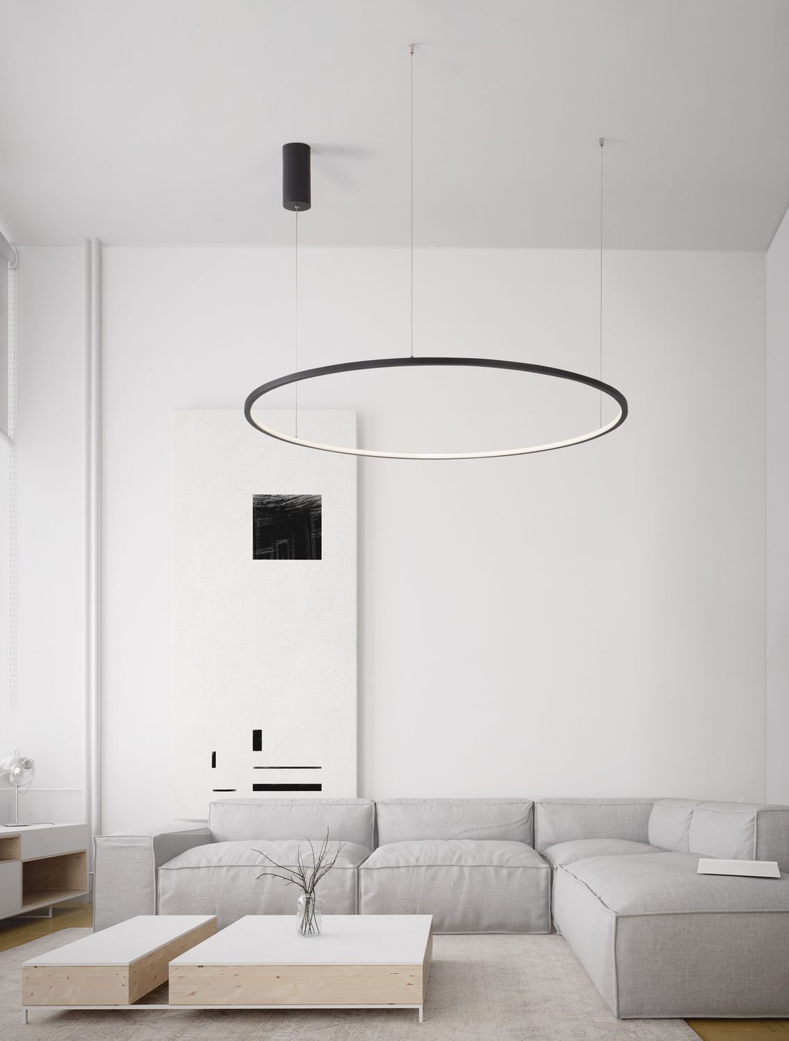 Preview: Nova Luce TARQUIN LED Pendelleuchte Schwarz 59W Warmweiss 200x100cm dimmbar 9345609