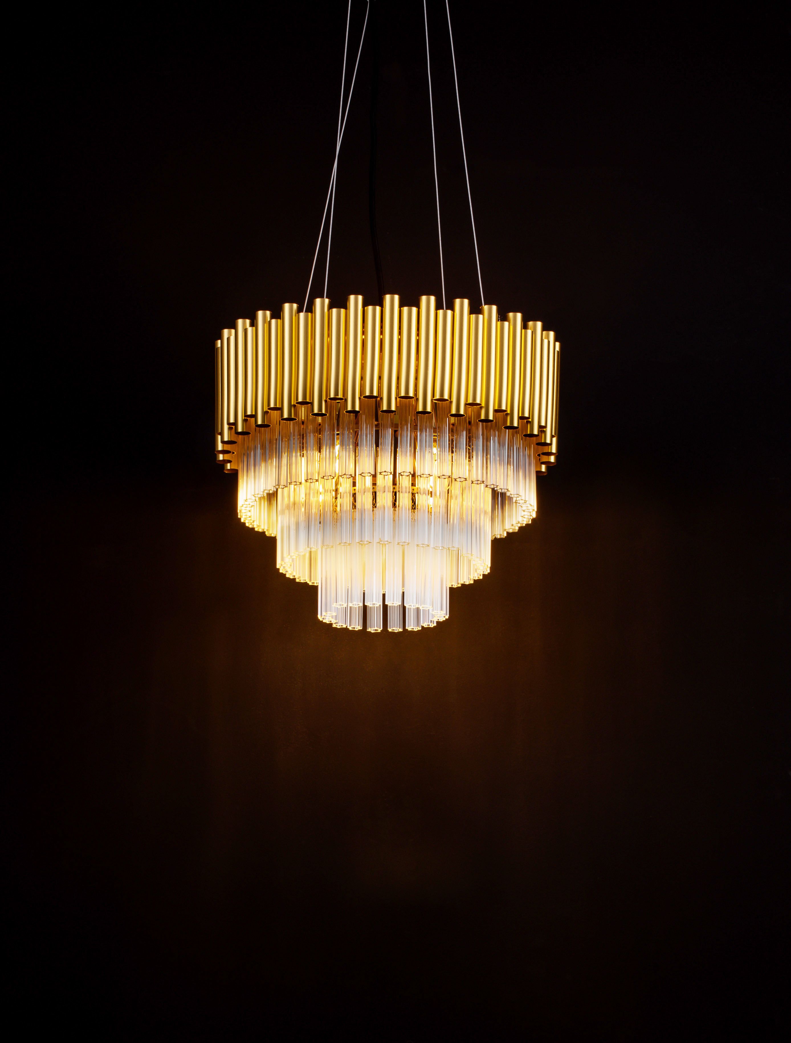 Preview: Nova Luce MAGNOLIA Pendelleuchte E14 5-fach Gold 120x39cm dimmbar 9824080