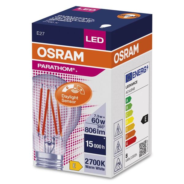 Preview: OSRAM PARATHOM Tageslichtsensor CLASSIC A 7.3W 827 klar E27 Lampe 806lm 2700K warmweiss wie 60W 4058075762015
