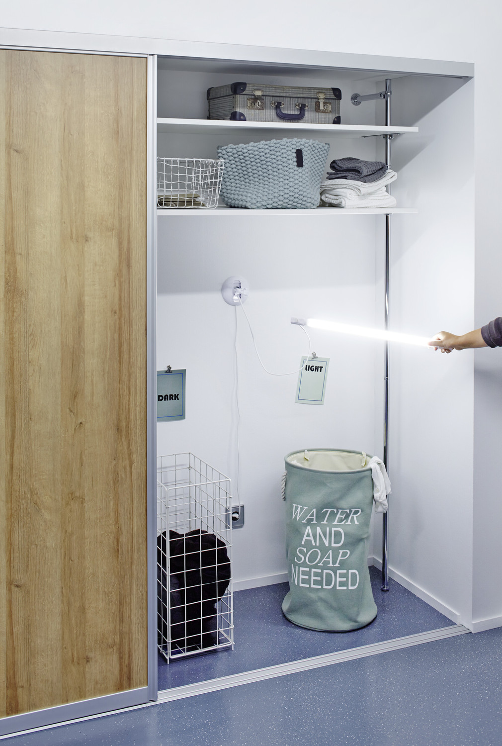 Mobile LED-Lichtleiste. Produkteigenschaften: Haltbare und energiesparende LED-Leuchte. Quecksilberfrei und RoHS-konform. Clip-In-Technik für stationären Einsatz und Haken für mobilen Einsatz. Lebensdauer bis zu 30.000 h. Nicht dimmbar. Gehäuse aus Polycarbonat. Homogene Ausleuchtung. Farbtemperaturen: 3.000 K, 4.000 K. Farbwiedergabeindex Ra: ≥ 80. Produktvorteile: Einfach zu bedienende multifunktionale LED-Lichtleiste. Erforderliches Zubehör enthalten (Schrauben, Dübel, Klammern, Haken). Anschlussfertig durch integrierten Ein-/Ausschalter und Leitung mit EU-Stecker. Lichtstark, robust und langlebig. Bis zu 65 % Energieersparnis verglichen mit Leuchten, die T8-Leuchtstofflampen am KVG nutzen. Homogene Lichtausstrahlung. Anwendungsgebiete: Innenraumanwendungen. Korridore, Eingangsbereiche, Treppenhäuser, Wohnzimmer, Keller. Regale, Möbelintegration oder Unterbau. Direkte oder indirekte Beleuchtung (z.B. Voutenbeleuchtung). Küchen, Arbeitsbereiche. Technische Ausstattung: Vollständiges Montage- und Anschlusszubehör enthalten. Sicherheitshinweise: Um die Gefahr einer Strangulierung zu verringern, muss die an der Leuchte angeschlossene flexible Zuleitung, sofern sich diese in Armreichweite befindet, direkt und fest an der Wand montiert werden..