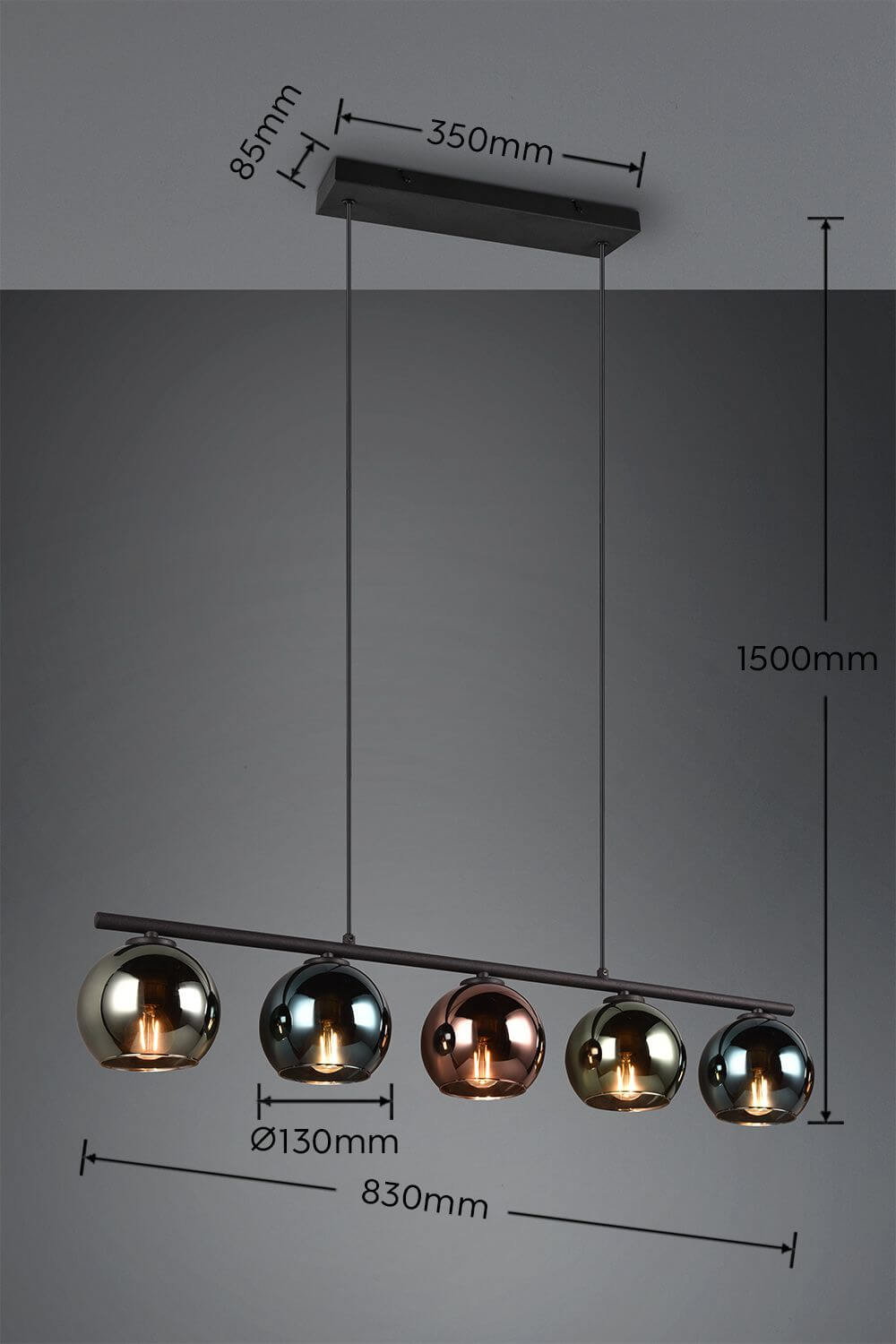 Reality Sheldon Pendelleuchte E14  5-fach ⌀13cm Multicolor Höhenverstellbar
