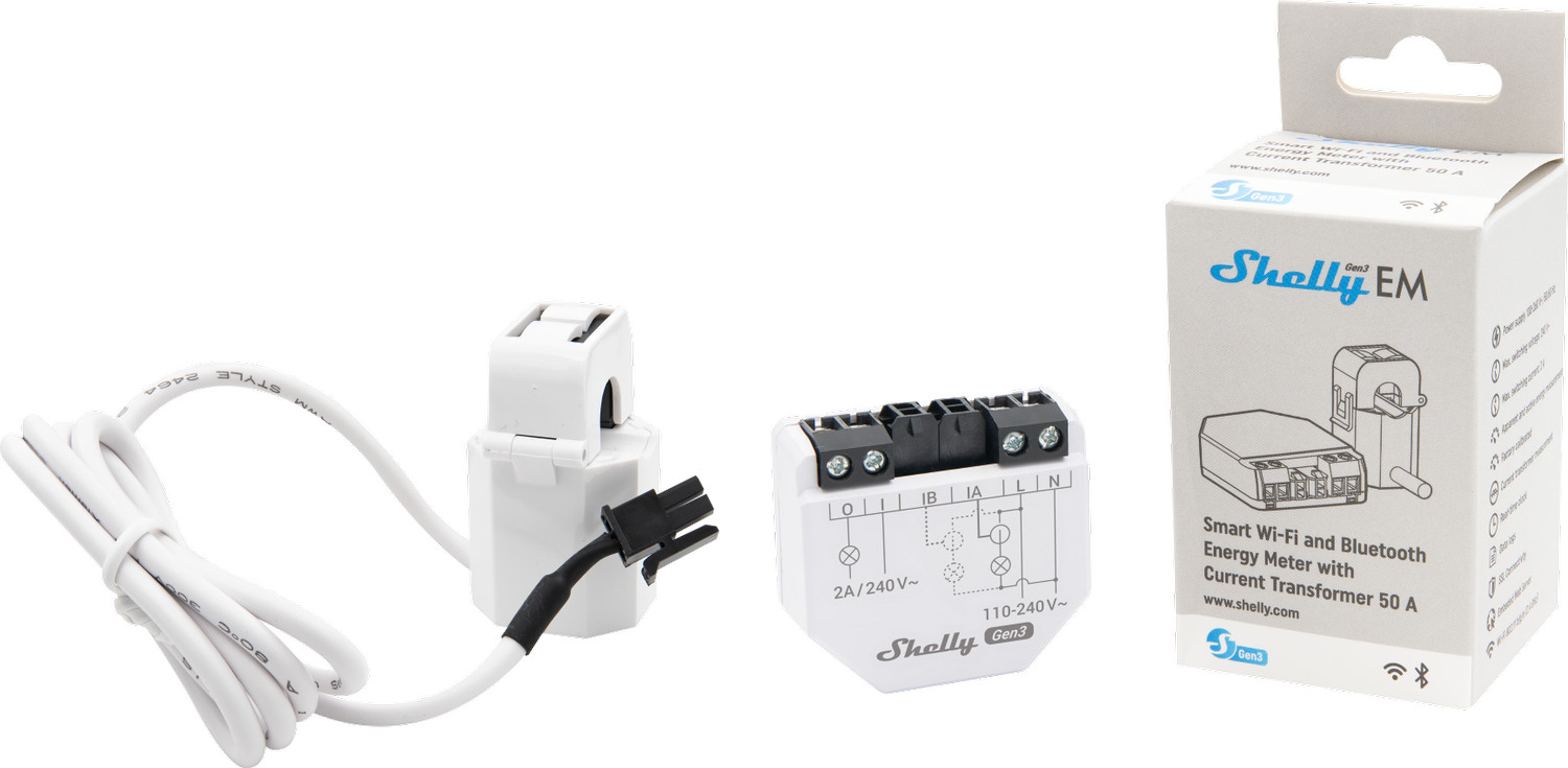 Shelly EM Gen3 - WLAN Energiezähler Set inkl. 50A Wandler, Stromzähler, Messfunktion