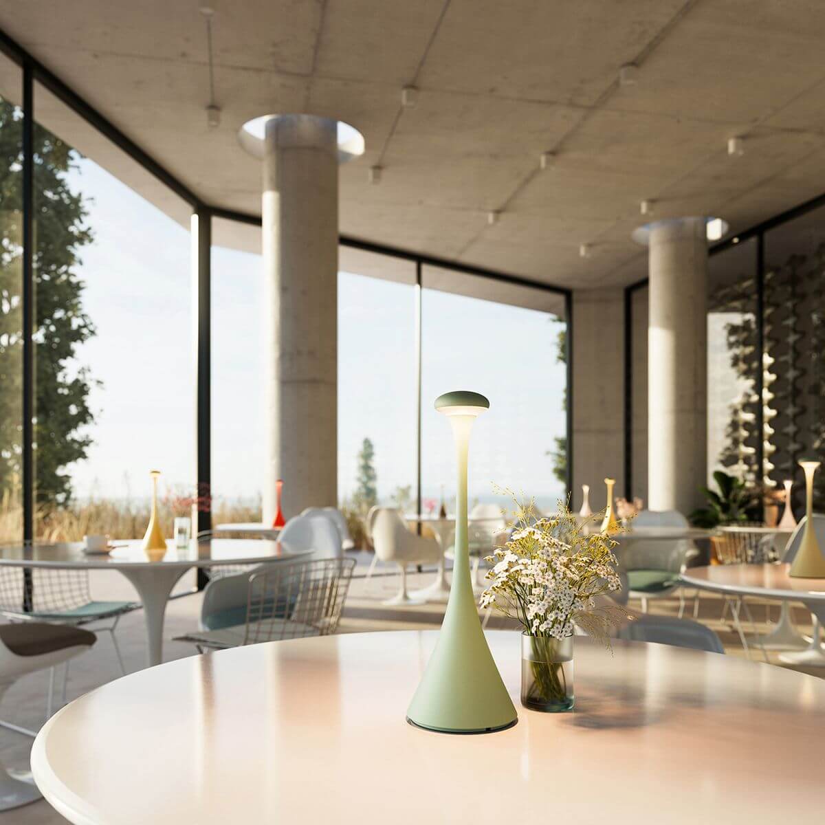 SIGOR Akku-Tischleuchte Nudrop 29cm salbeigrün 2,2W Flex-Mood 2200K/2700K IP54 Ra85 dimmbar
