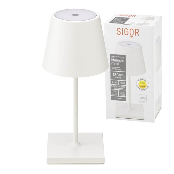 SIGOR 4547201 Akku-Tischleuchte Nuindie mini 25cm schneeweiß 2,2W FlexMood 2200K/2700K IP54 Ra85 dimmbar