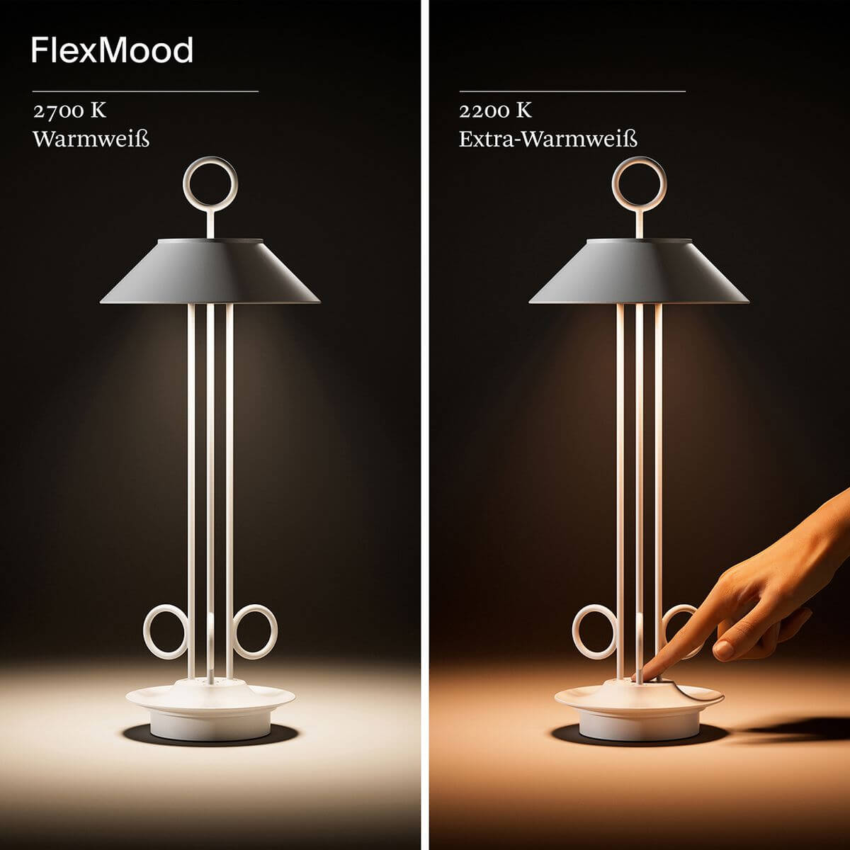 Mobile Preview: SIGOR Akku-Tischleuchte Nudiderot 42cm schneeweiß 2,2W FlexMood 2200K/2700K IP54 Ra85 dimmbar