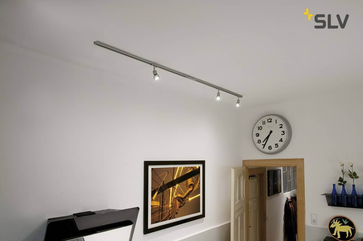 Preview: SLV 143194 1-Phasen Hochvolt-Set 4 silbergrau 2x1m inkl. 3X PURI und LED Lampe 4,3W