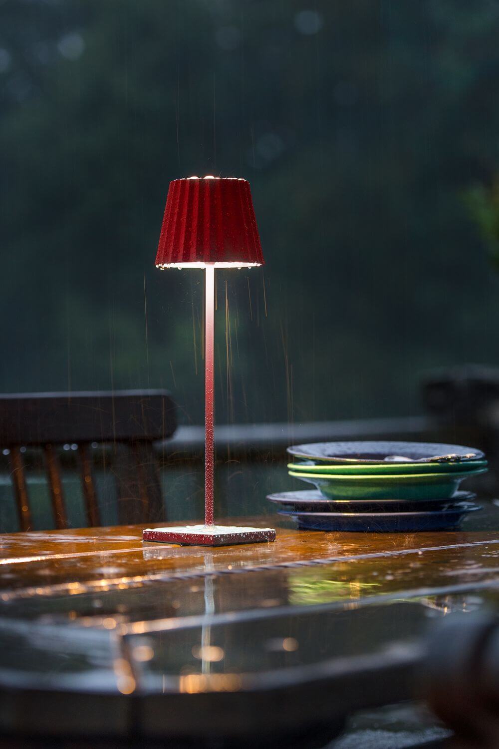 • TROLL 2.0 - die Outdoortischleuchte mit dem unverkennbaren Plissee-Schirm. Aus Aluminium gefertigt und in diversen Farben und Mustern beschichtet, kann die TROLL 2.0 dank IP54 Klassifizierung Indoor und Outdoor eingesetzt werden. Die kräftigen Akkus bieten bis zu 24 Stunden kabelloses Licht. Über den Touch-Sensor auf der Oberseite der Leuchte kann die Leuchte stufenlos gedimmt und die zwischen zwei warmweißen Lichtfarben gewählt werden. Über die mitgelieferte Ladestation lässt sich die TROLL 2.0 im Handumdrehen wieder aufladen.