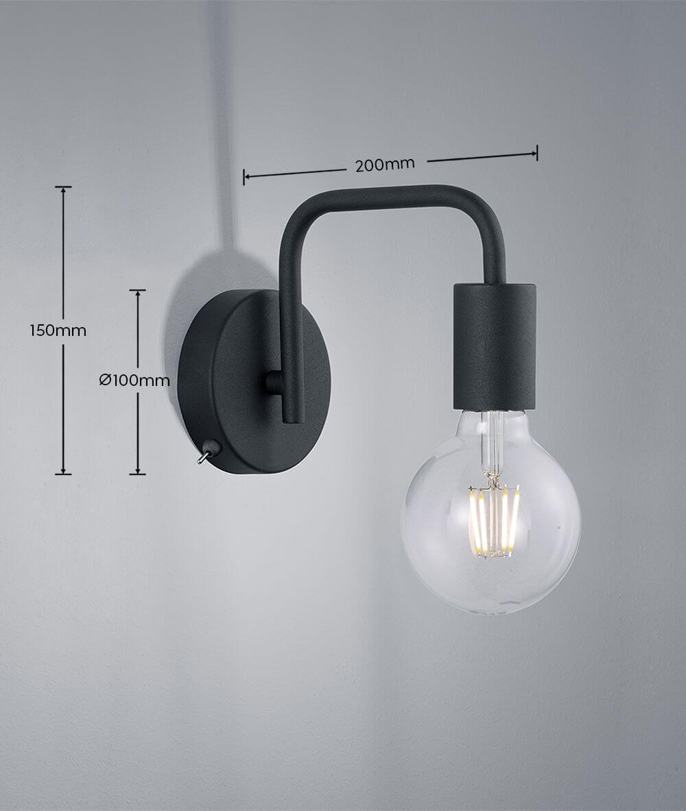 Trio Diallo Wandleuchte E27 Schwarz Matt