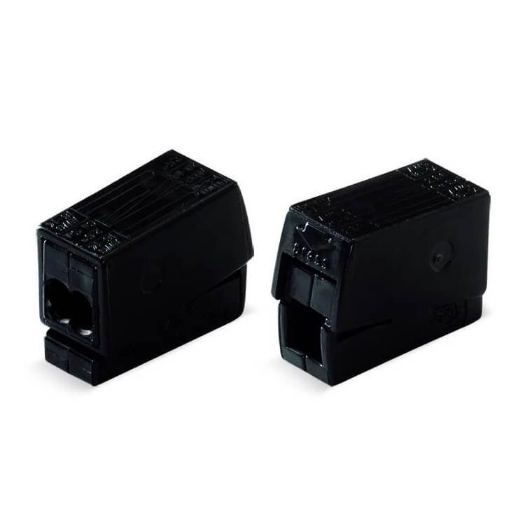 • 2-Leiter-Leuchtenklemme; Drücker Leuchtenseite; Leuchtenseite: für alle Leiterarten; Inst.-Seite: für eindrähtige Leiter; Serie 224; max. 2,5 mm²; Umgebungstemperatur max. 75 °C; 2,50 mm²; schwarz.