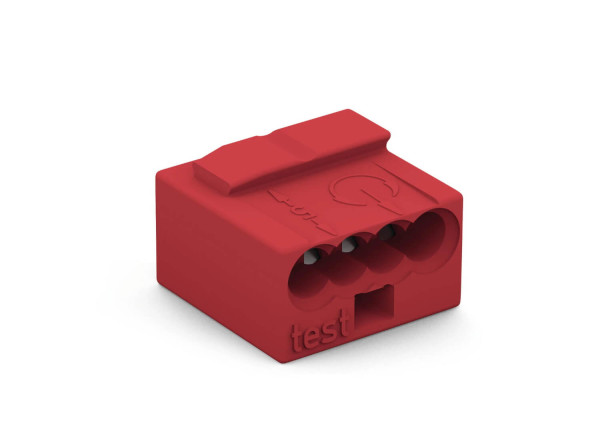 • MICRO-Verbindungsdosenklemme; für eindrähtige Leiter; Ø 0,8 mm; 4 Leiter; Deckelfarbe lichtgrau; Umgebungstemperatur max. 60°C; rot.