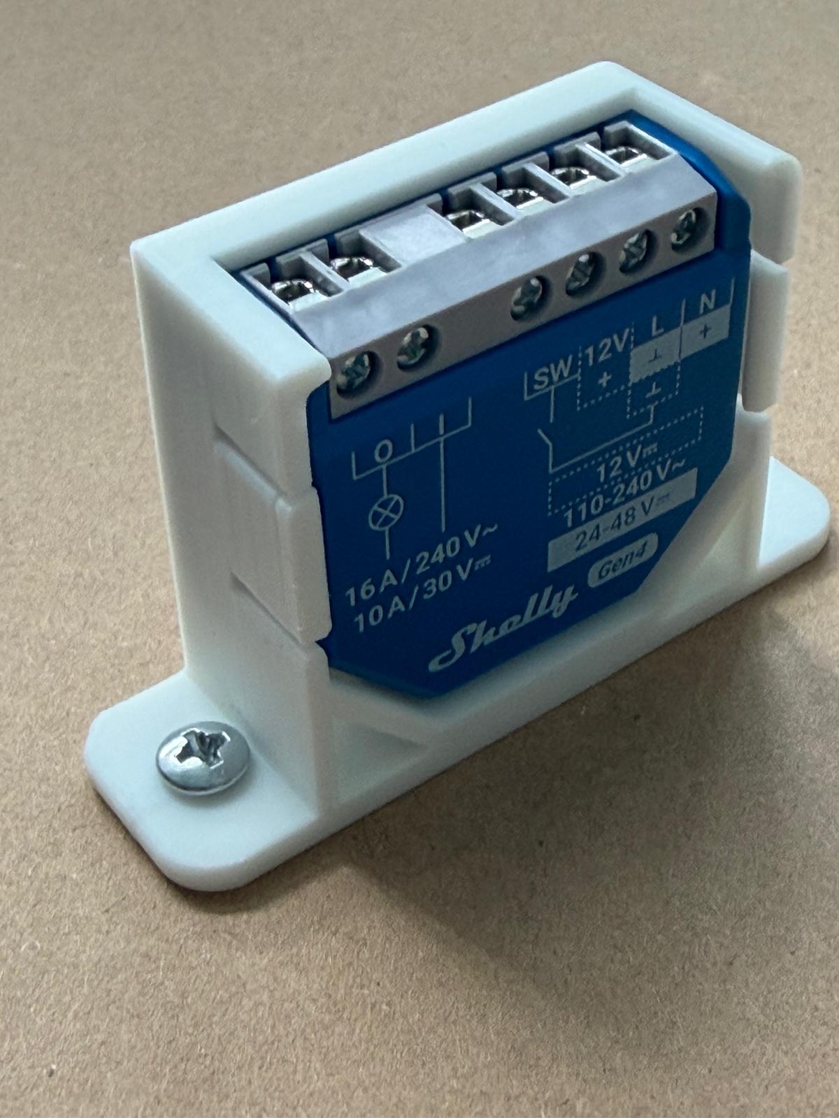 Mit diesem Wandhalter montieren Sie Ihren Shelly PLUS, Gen3, Gen4 sauber, sicher und platzsparend auf einer Wand.